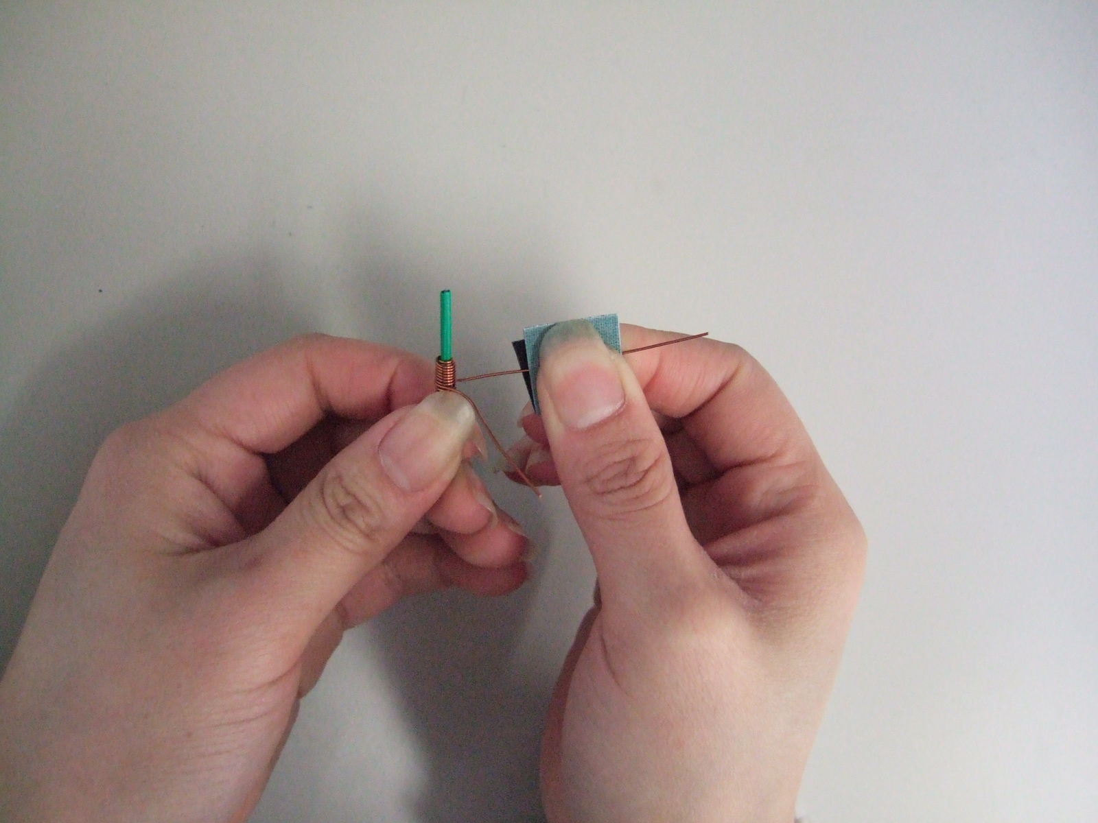 エナメル線に隙間ができないようしっかりと巻きます。